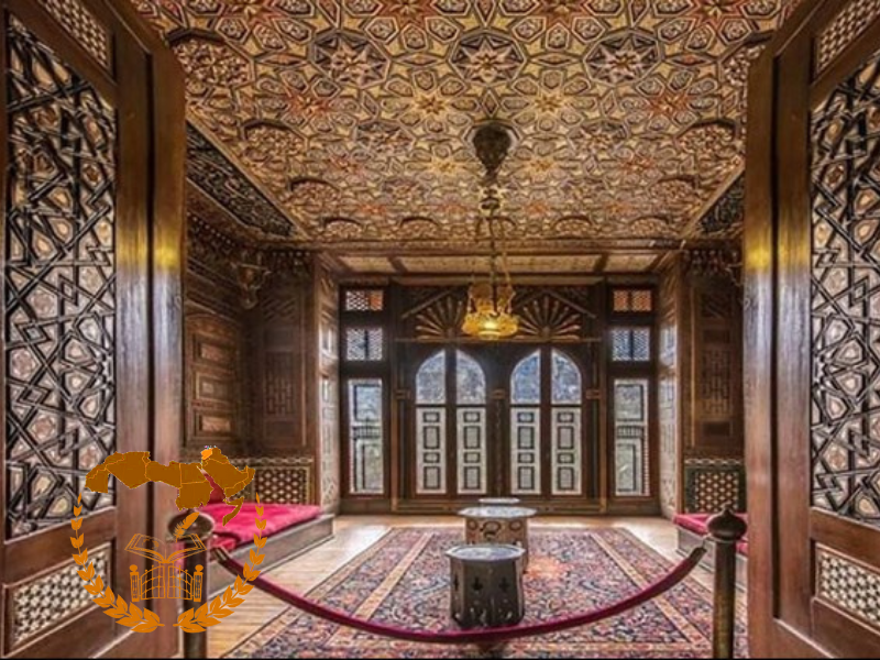 • الجدران مغطاة بالنقوش الإسلامية والزخارف الهندسية التي تحاكي الطراز المملوكي والعثماني.