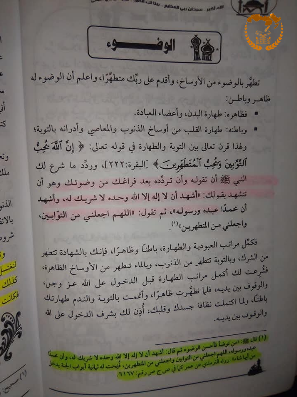 ◈ الوضوء: طهارة خارجية وداخليةالكاتب يربط الوضوء بالتطهير القلبي، فيقول:«حين تغسل وجهك، قل: اللهم اجعل وجهي نقيًا يوم ألقاك… وحين تمسح رأسك، تذكر أنك تُزيل هموم الرأس قبل أوساخه».